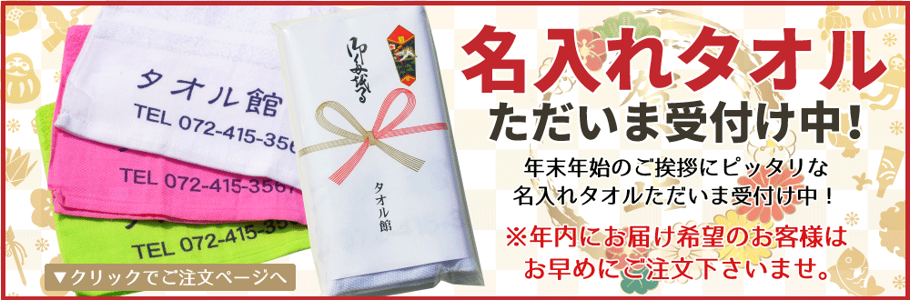 名入れタオルのご納期はご入金確認後、およそ3週間となります。
